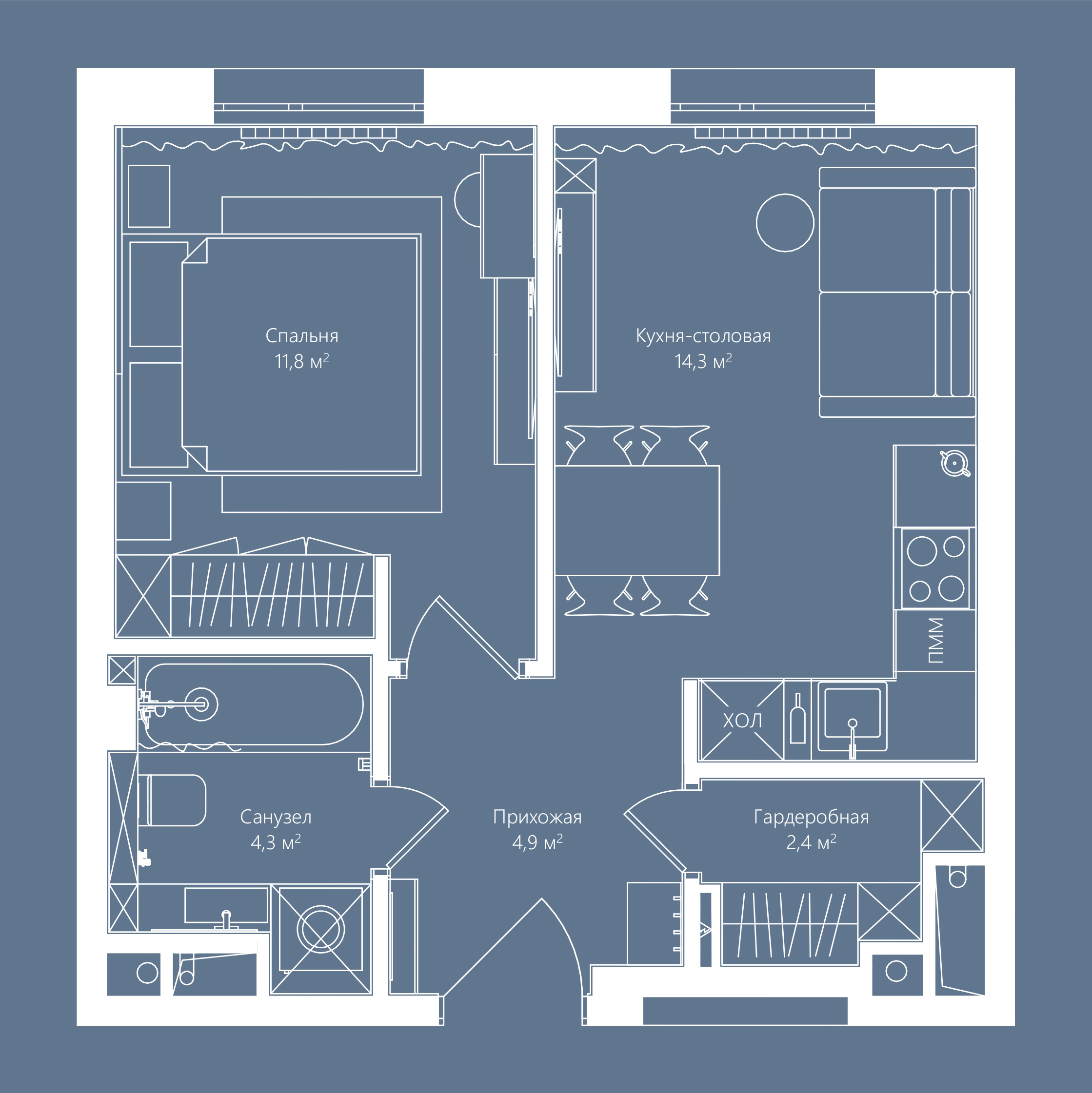 Квартира получилась камерной, но при этом очень живой, наполненной светом и настроением. Выделена отдельная гардеробная, спальня, комфортная зона отдыха, эргономичная кухня и правильной формы прихожая с красивой перспективой на обеденную зону и светильники над ней.